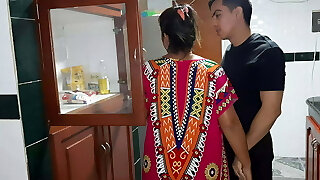 My step-mother gives me a blowjob in the kitchen