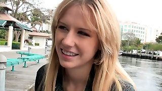 Pretty platinum-blonde lets a stranger put his finger in her cooch