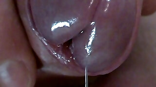 Wife's stretched pussy close up urinating