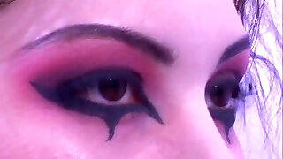 Young Goth Puts on Dark Red Lipstick and Plays with Ginormous Puffy Nips