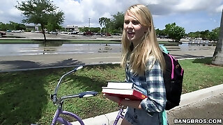 Slutty nextdoor platinum-blonde Naomi Woods is eager for big dick of one elderly stud