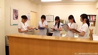 Horny nurses enjoying hardcore sexual intercourse with blowjob and jism