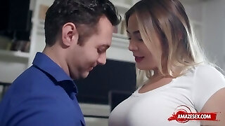 MILF with huge globes dicked down by her athletic stepson