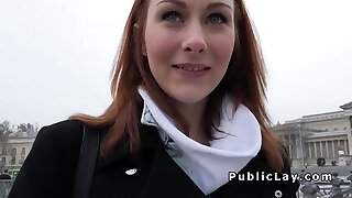 Lusty redhead filly Lauren gets her wet cunt bashed with a big rod