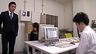 Straight haired secretary tempts chief and gives him a stout blowjob