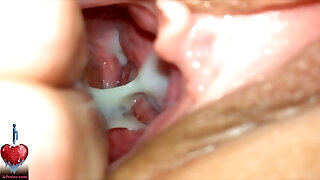 Sperm harvesting from fucked pussy with closeup of creampie inwards the tight and shaved vagina