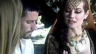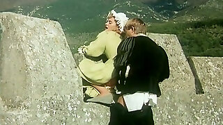 Horny lord catches and massages hot ash-blonde lady in his castle