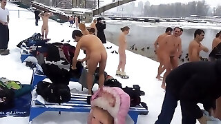 Subtitled CFNM puffy Japanese outdoor bathing handjobs