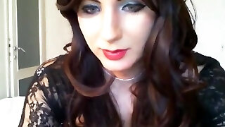 Crossdresser Bree flashes us her sexy wardrobe and strokes