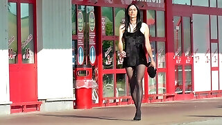 DeeDeeSlut69 - Out in her Ebony Lingerie and purple Tee-shirt in Public