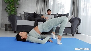 During yoga class amazing Mia Malkova has lesbo sex with her girlfriend