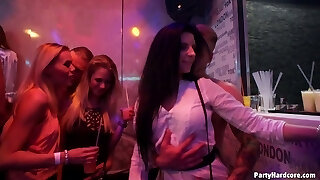 Slutty girls goes wild in the night club and take part in a crazy gang sex