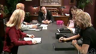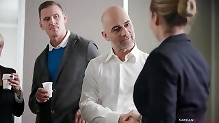 Blonde Bosses Fucking Their Employees' Good-sized Cocks In CFNM Foursome