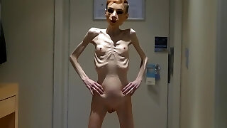 Anorexia Christin showing her Bones & Skinny Skeleton