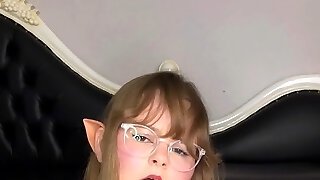 Light haired nerdy all alone nympho was masturbating on the sofa